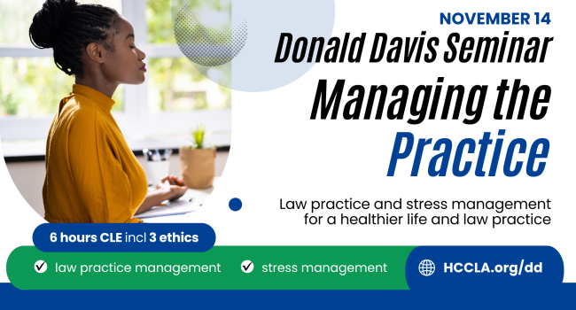 HCCLA presents many invaluable CLE courses throughout the year, along with numerous social activities – including an annual banquet, annual Holiday Party, Happy Hours & Second Chair Program Brainstorming Luncheons. Come out and meet us!
